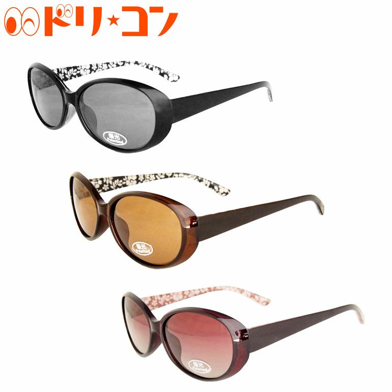 偏光サングラス【JJ4108】オーバルタイプ UVカット 紫外線カット 青山眼鏡 偏光レンズ 反射光 ブラック ブラウン ルビーブラウン