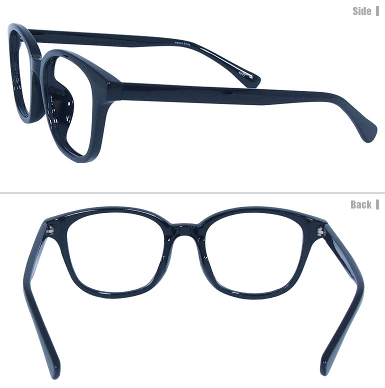 梅ネコメガネ【8691-BK】(セルフレーム+薄型レンズ+メガネ拭き+ケース付き) 黒系