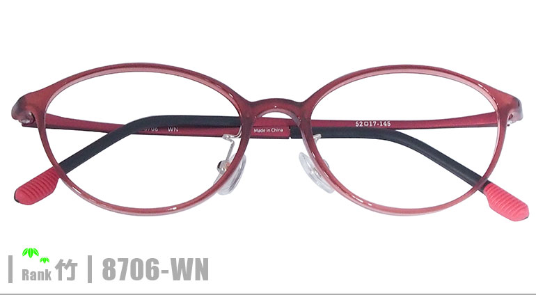 竹ネコメガネ【8706-WN】(セルフレーム+薄型レンズ+メガネ拭き+ケース付き)赤系※素材の特性上、顔幅の調整はできません。