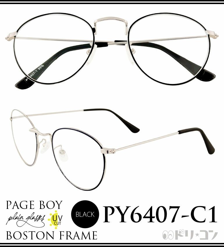 伊達メガネ UVカット付き 全3種 ボストンフレーム メタルフレーム アイウェア ブラック ブラウン ピンク※伊達メガネの為、各種調整及び度付レンズへの加工不可【ドリームコンタクト】