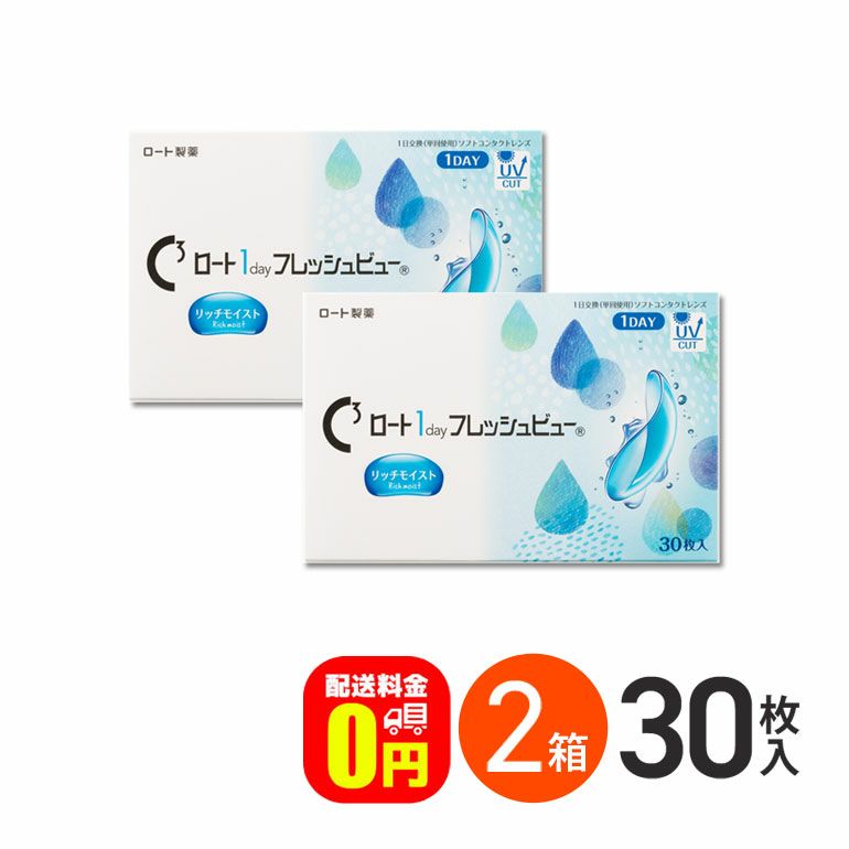 【送料無料】ロート 1day フレッシュビュー リッチモイスト 30枚入 2箱セット / 1日使い捨てコンタクトレンズ ワンデー 高含水 クリアコンタクトレンズ UVプロテクト機能 紫外線 うるおい ROHTO ロート製薬