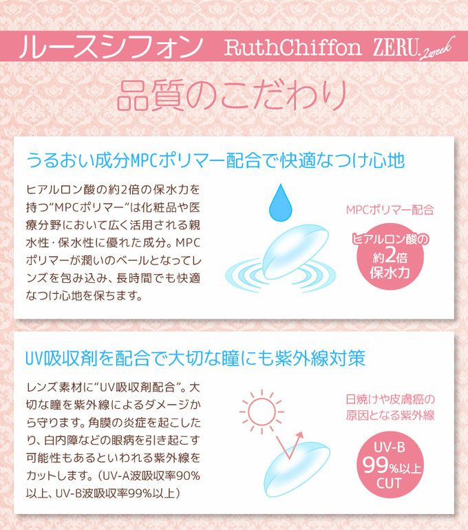 【欠品中】◇メール便発送可◇ルースシフォン ゼル 2ウィーク UVモイスト 6枚入 1箱 カラーコンタクト 2週間交換 カラーコンタクトレンズ 2week SHO-BI Labo株式会社 1-DROYAL サークルレンズ RuthChiffon ZERU UVカット 紫外線 うるおい ナチュラル オトナカラコン