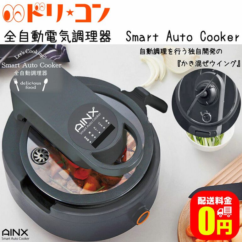 【送料無料】スマートオートクッカー 全自動電気調理器 AX-C1BN / アイネクス株式会社 AINX 自動調理 電気調理 かき混ぜウイング 手間いらず 火を使わない 時産調理 ほったらかし調理 ワンタッチ 簡単操作 簡単調理 炒める 煮込む 蒸す 低温調理 温め直し Smart Auto Cooker
