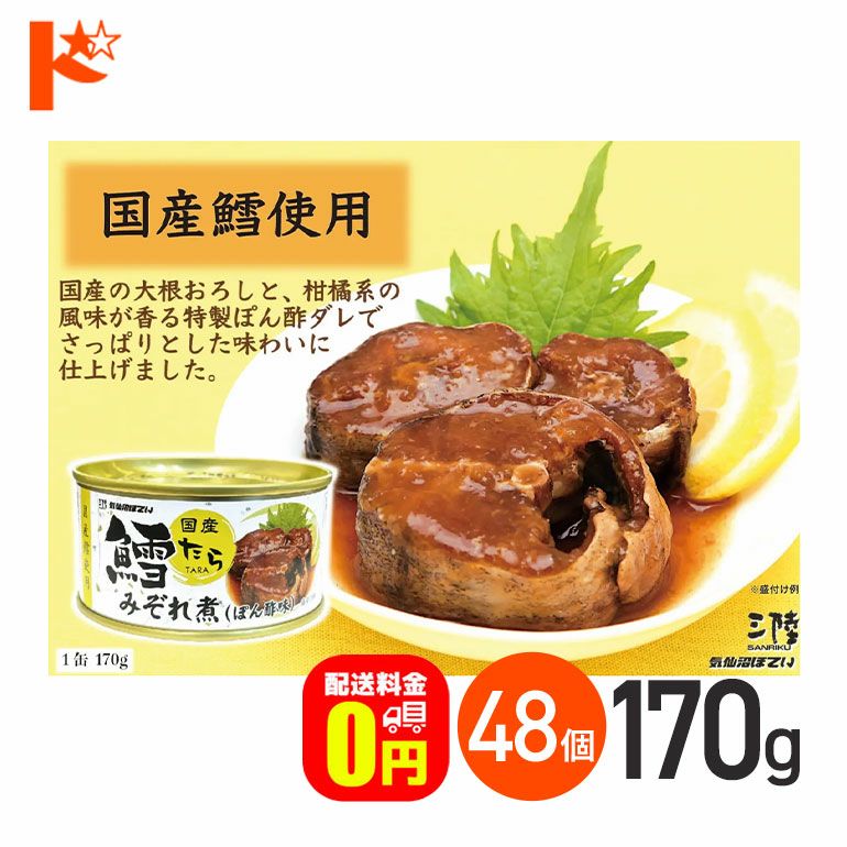 【送料無料】鱈みぞれ煮ぽん酢風味 缶詰 170g 48個セット 軽減8%