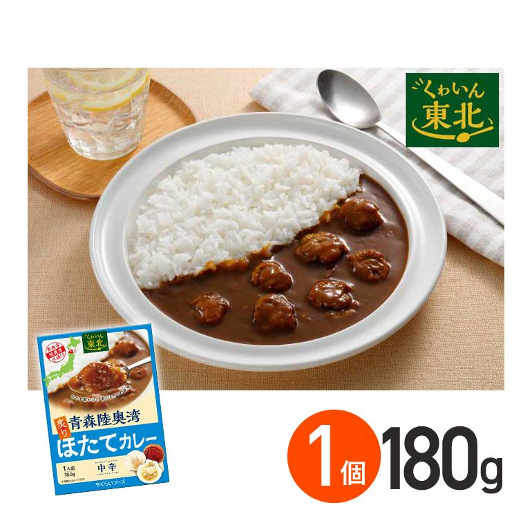 ◇宅配便限定発送◇ 青森陸奥湾炙りほたてカレー 中辛 180g 1箱 軽減8% / 株式会社やくらいフーズ レトルトカレー 保存食 時短 ご当地 お取り寄せグルメ 海鮮 シーフード レトルト食品 カレーライス