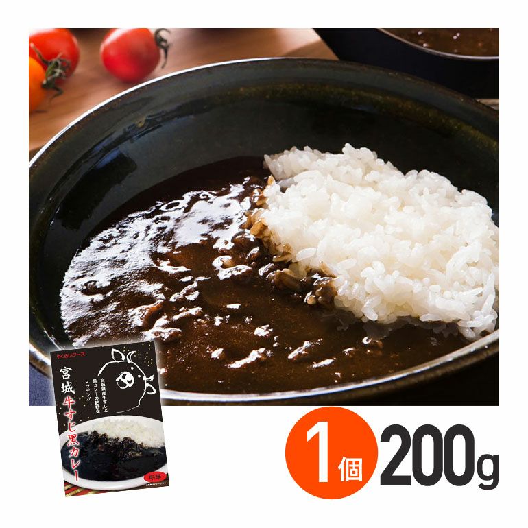 ◇メール便限定発送◇ 宮城牛すじ黒カレー 中辛 200g 1箱 軽減8% / 株式会社やくらいフーズ レトルトカレー 保存食 時短 ご当地 お取り寄せグルメ 牛すじ 牛肉 スパイス レトルト食品 カレーライス